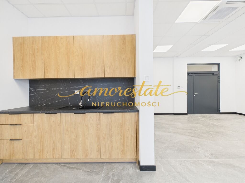 Część biurowa wykończona pod klucz. Kuchnia oraz łazienka